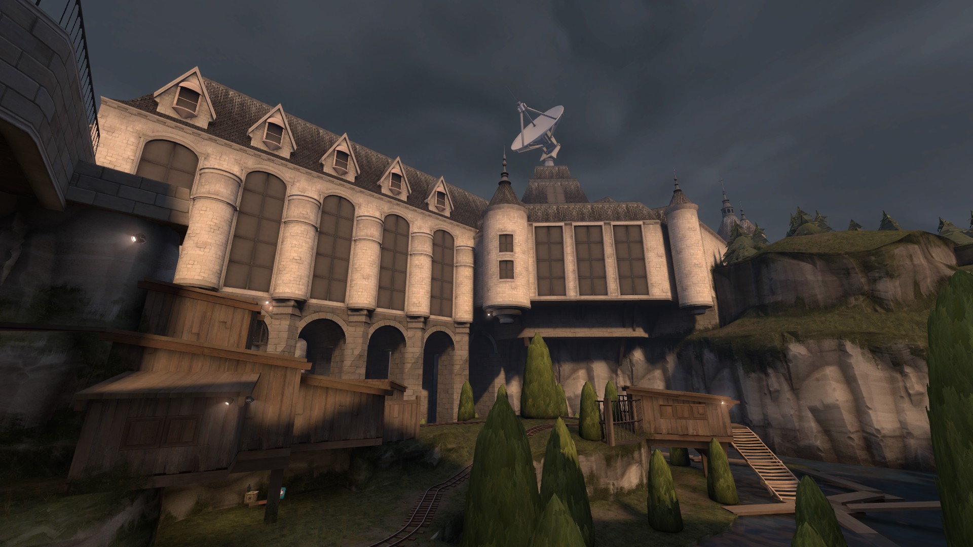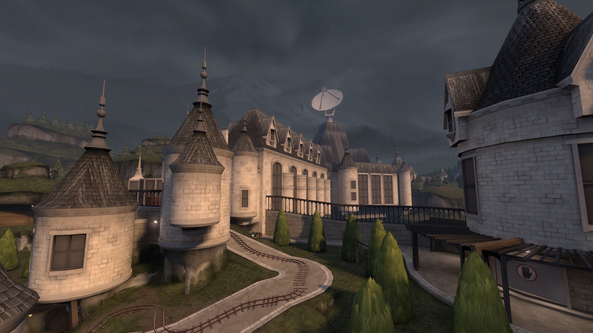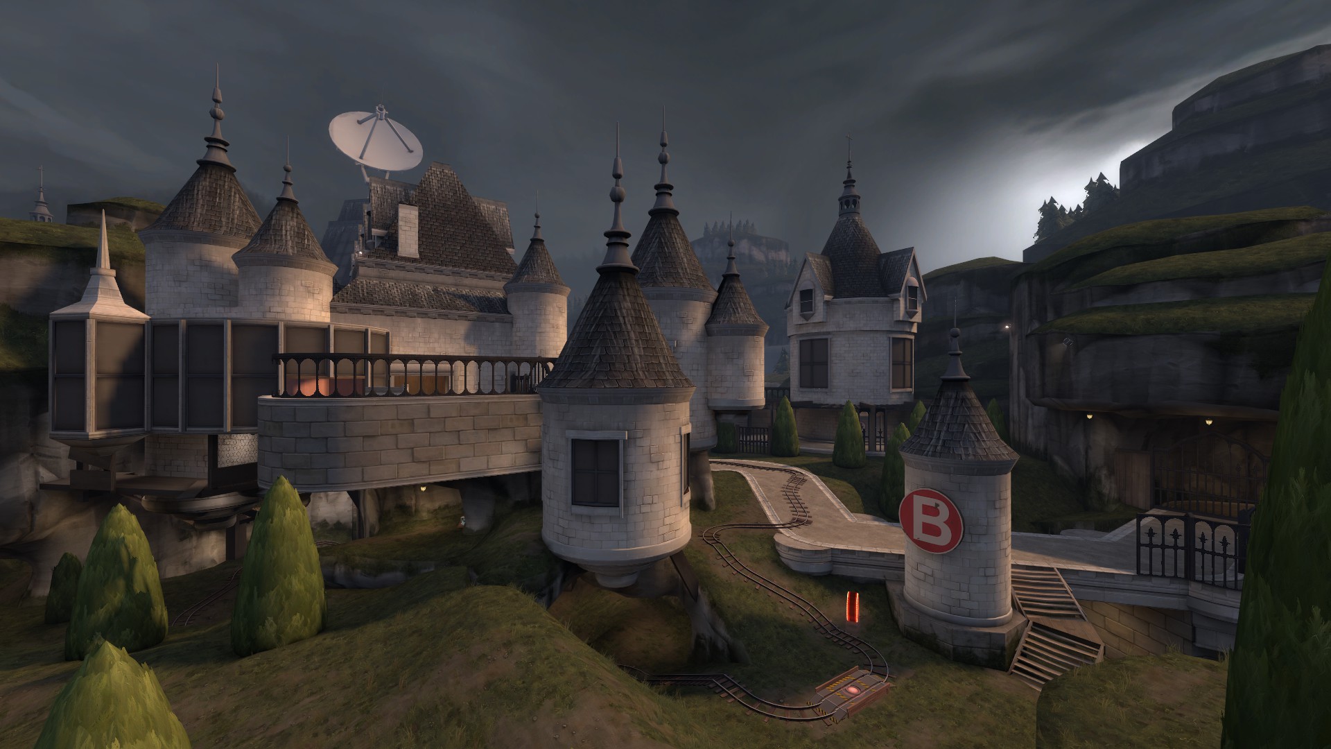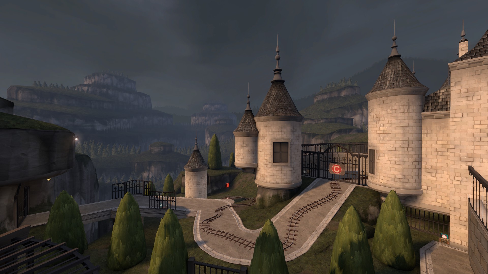 Chateau is a payload multiplayer map for Valve's Team Fortress 2 set in an abandoned Loire Valley styled French chateau. The goal for the layout was to overlap on itself using a strong visual, provide large scale outdoor battles, and tight indoor battles of attrition. The objective of the map is for the blue (attacking) team to push a bomb payload deep inside the chateau in order to blow up red (defending) team's supercomputer.