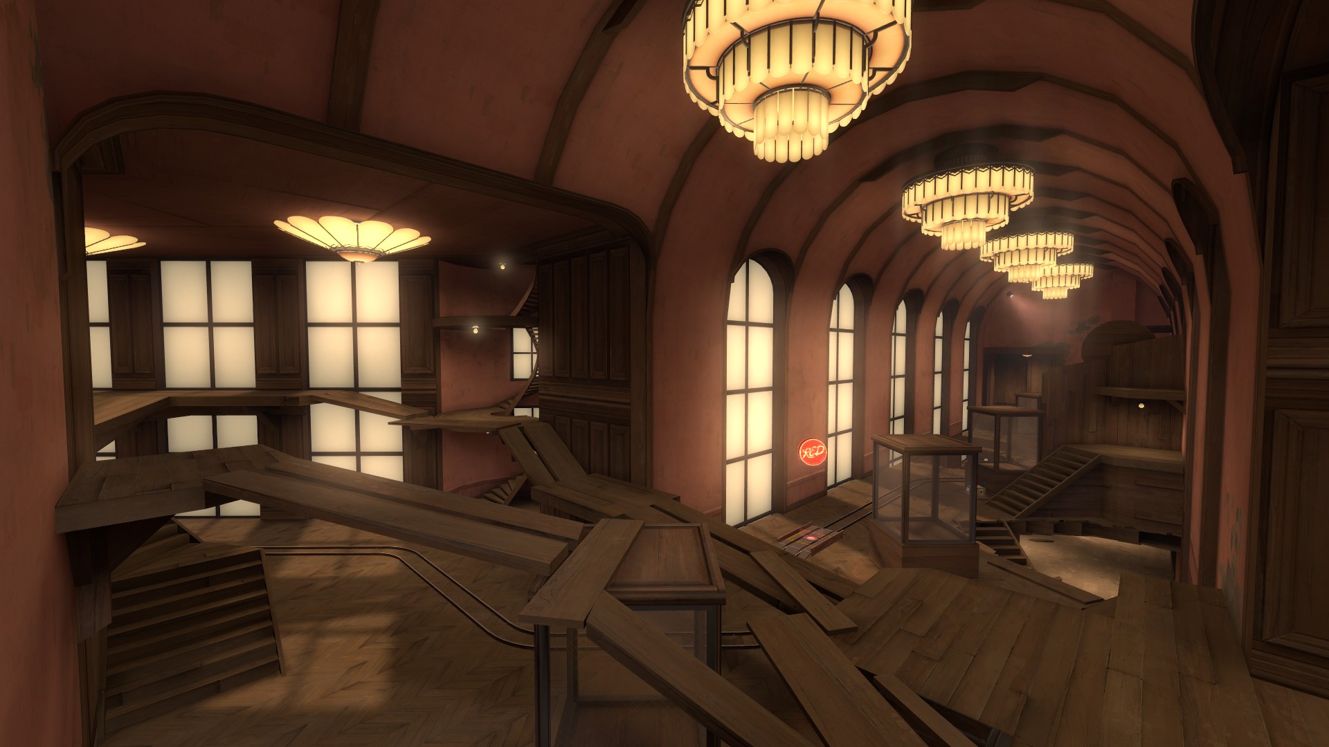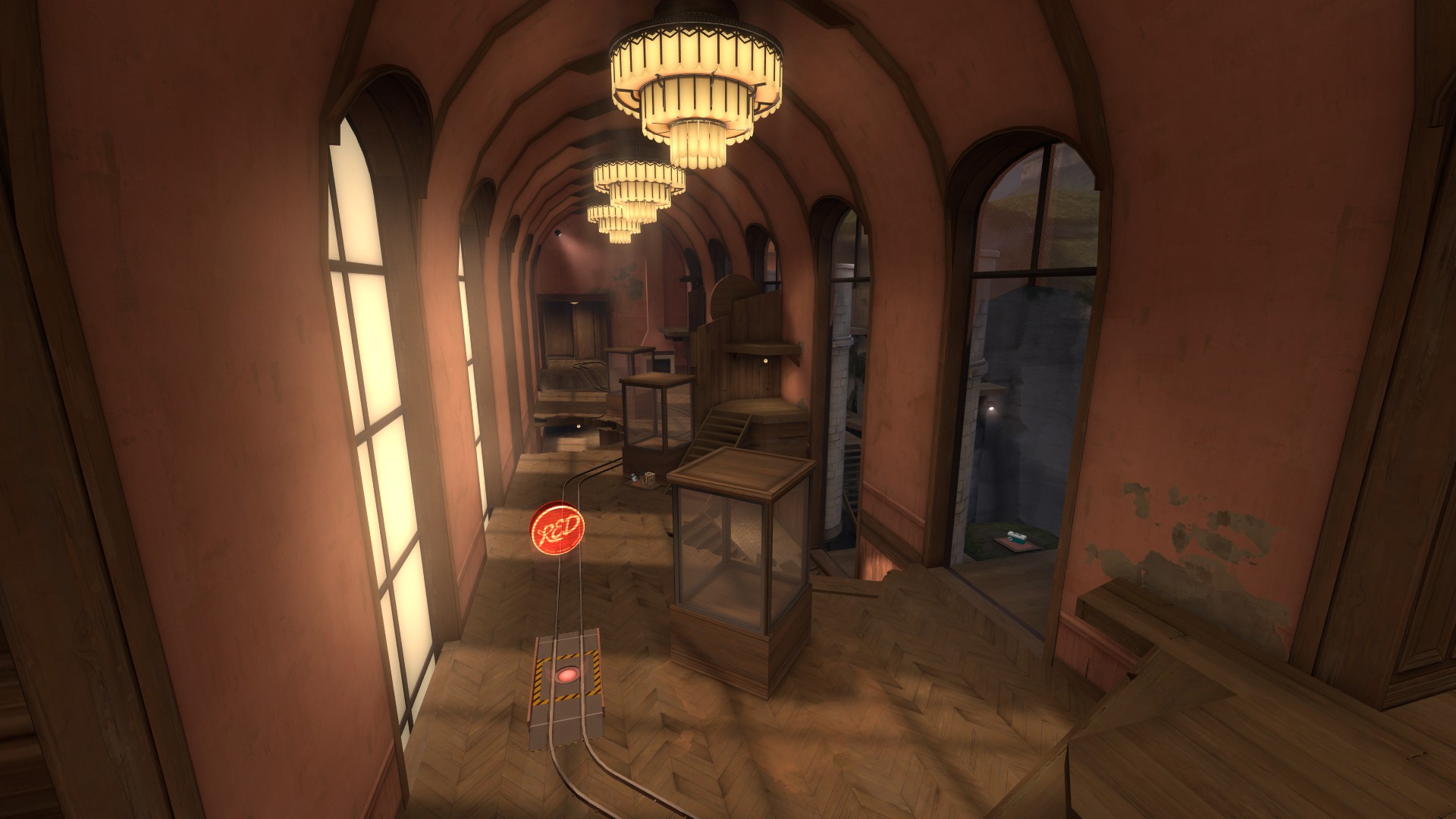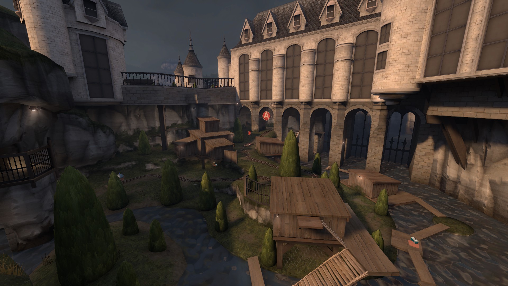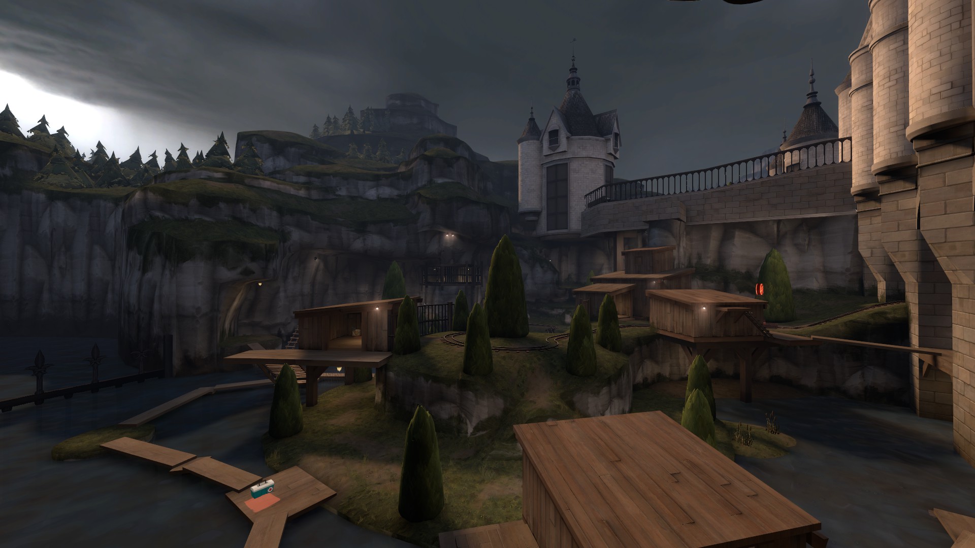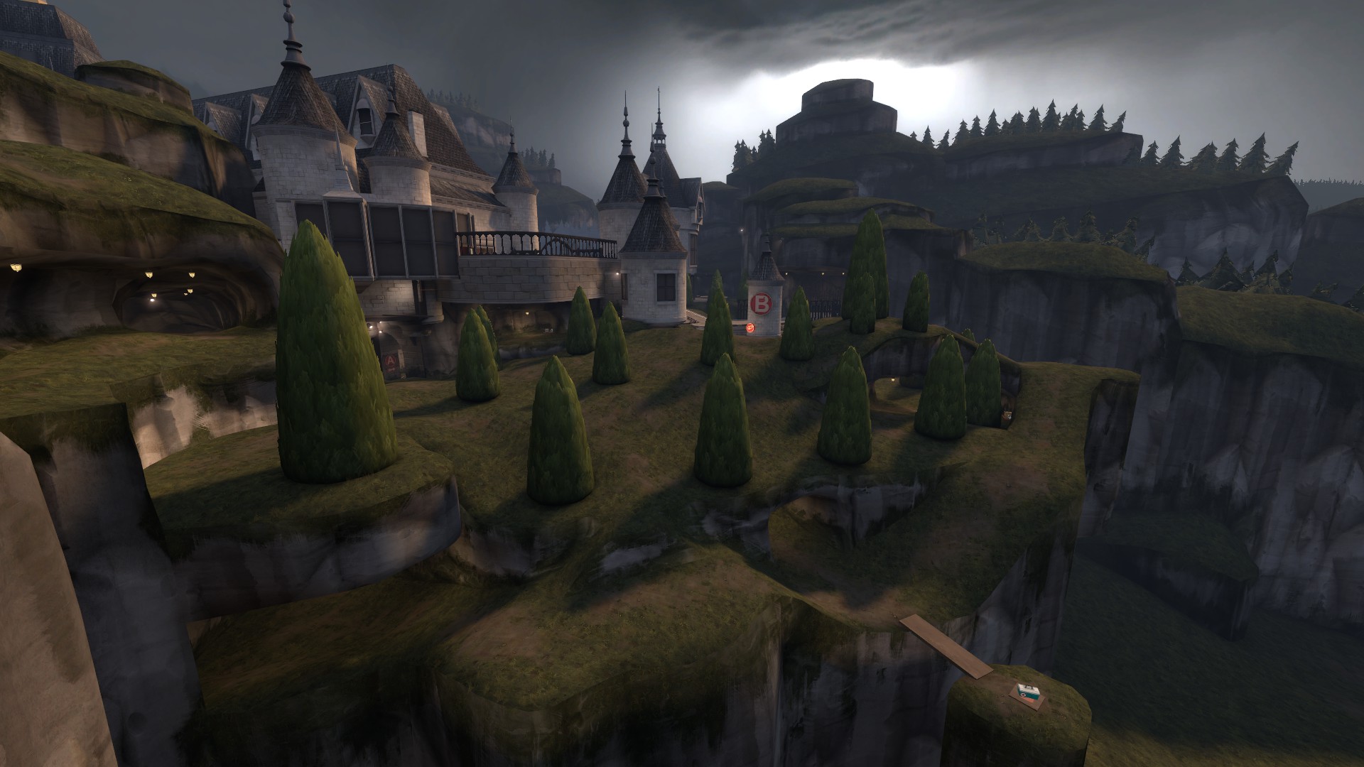 Chateau is a payload multiplayer map for Valve's Team Fortress 2 set in an abandoned Loire Valley styled French chateau. The goal for the layout was to overlap on itself using a strong visual, provide large scale outdoor battles, and tight indoor battles of attrition. The objective of the map is for the blue (attacking) team to push a bomb payload deep inside the chateau in order to blow up red (defending) team's supercomputer.