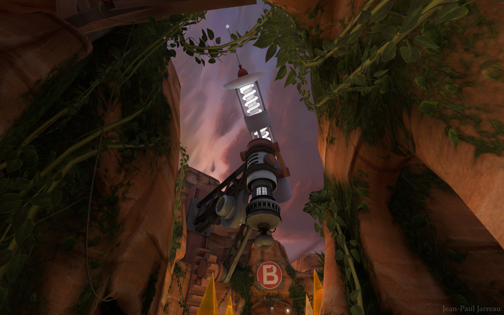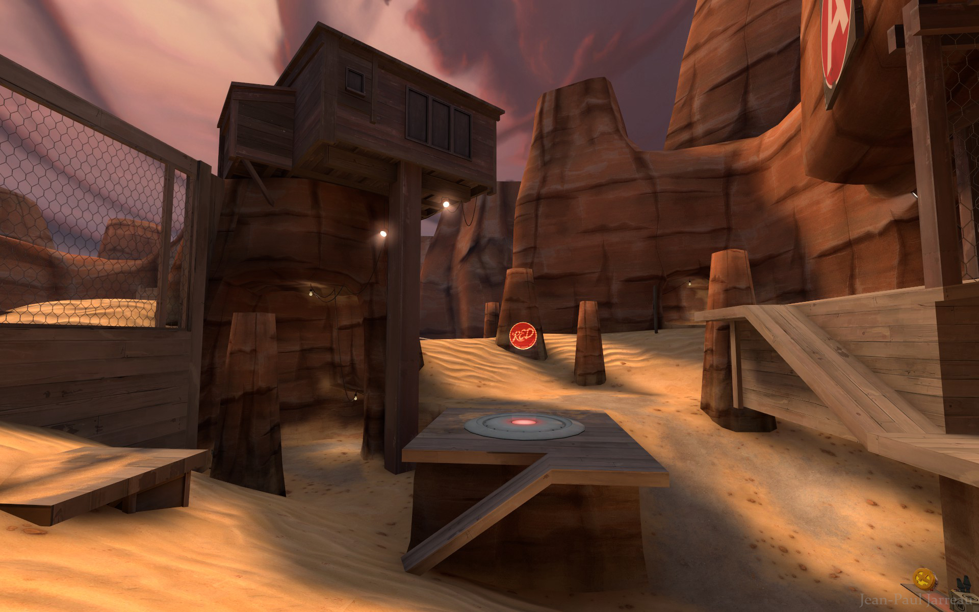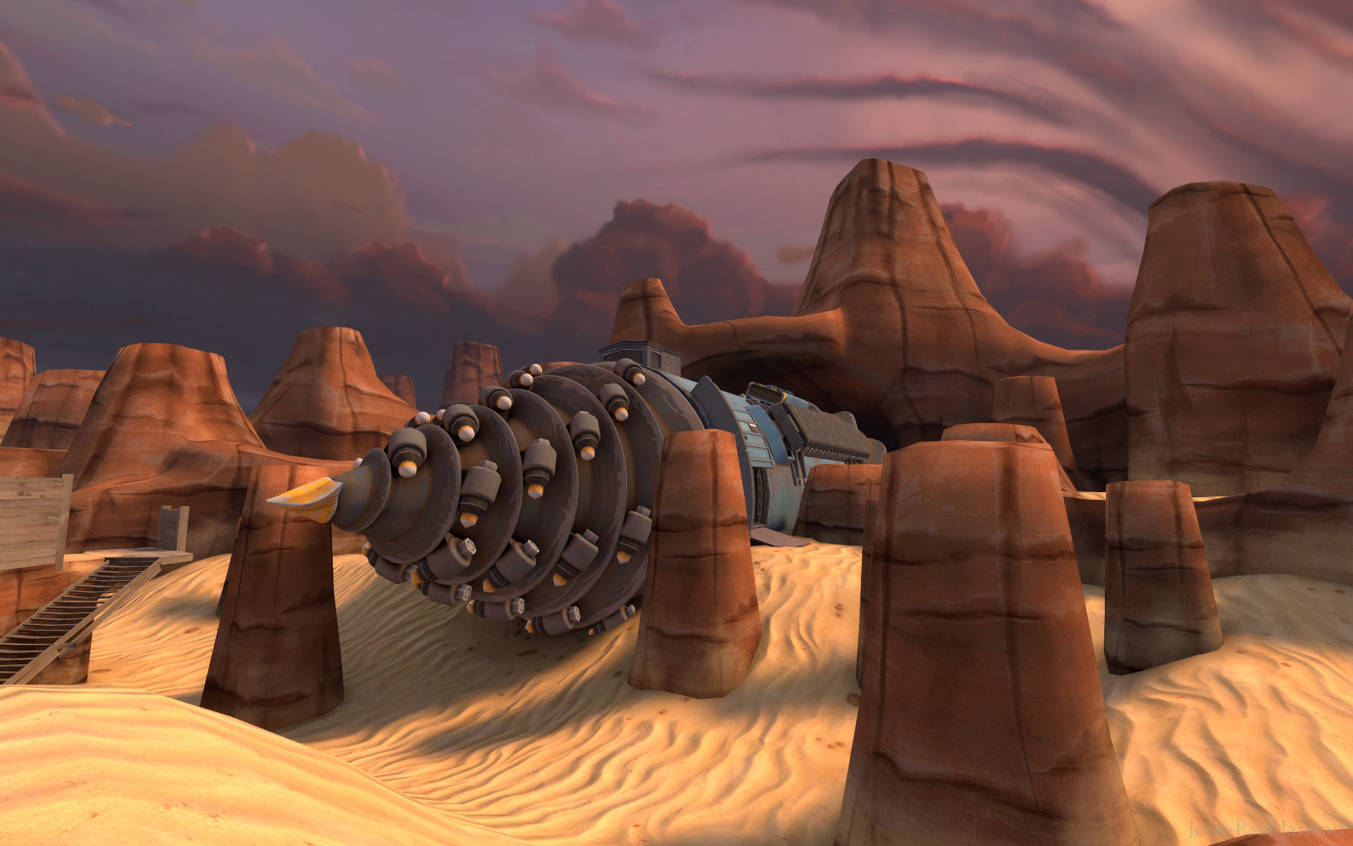 Osiris is an attack/defense multiplayer map for Valve's Team Fortress 2 set in an Egyptian temple. The goal of the design was to have battles spread over large sprawling sand dunes, tall shanty shacks, and tight corridors. Blue (attacking) team starts the map inside a giant drill machine and their objective is to capture each section of the map leading to the final area which is a mysterious source of energy for red (defending) team's massive laser.
