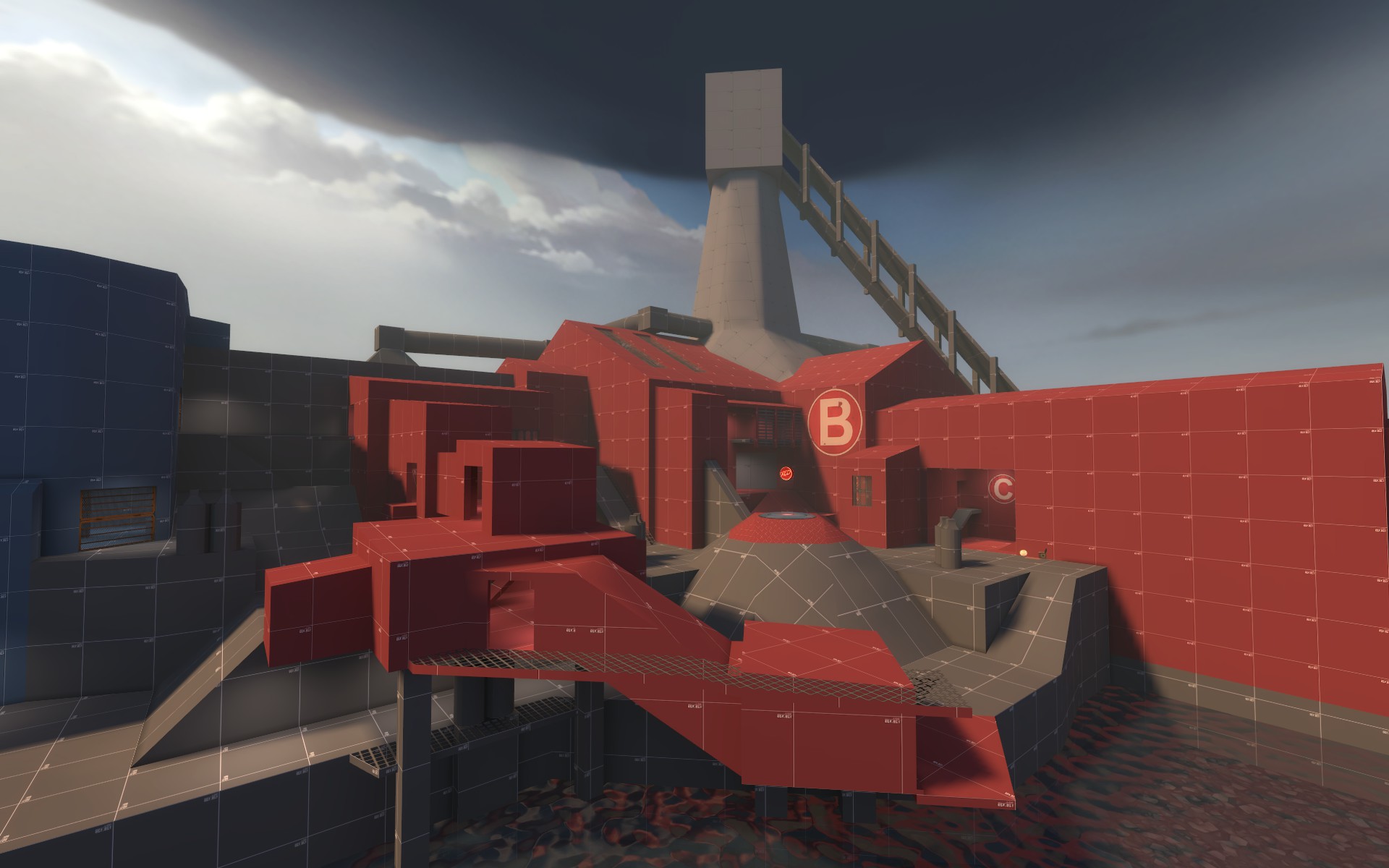 Blast is an attack/defense multiplayer map for Valveās Team Fortress 2 set in an abandoned blast furnace. This design uses a mechanic from a popular TF2 map, Steel, where the final winning control point is available from the beginning of the round but is difficult to reach until earlier control points are captured. Every successful control point capture changes the map dynamically to make the final point easier to access. Steel is an incredible map but I felt it didn't visually explain the layout very effectively so my main goal with Blast was to use the theme to express the overall layout concept to players in a more obvious way.